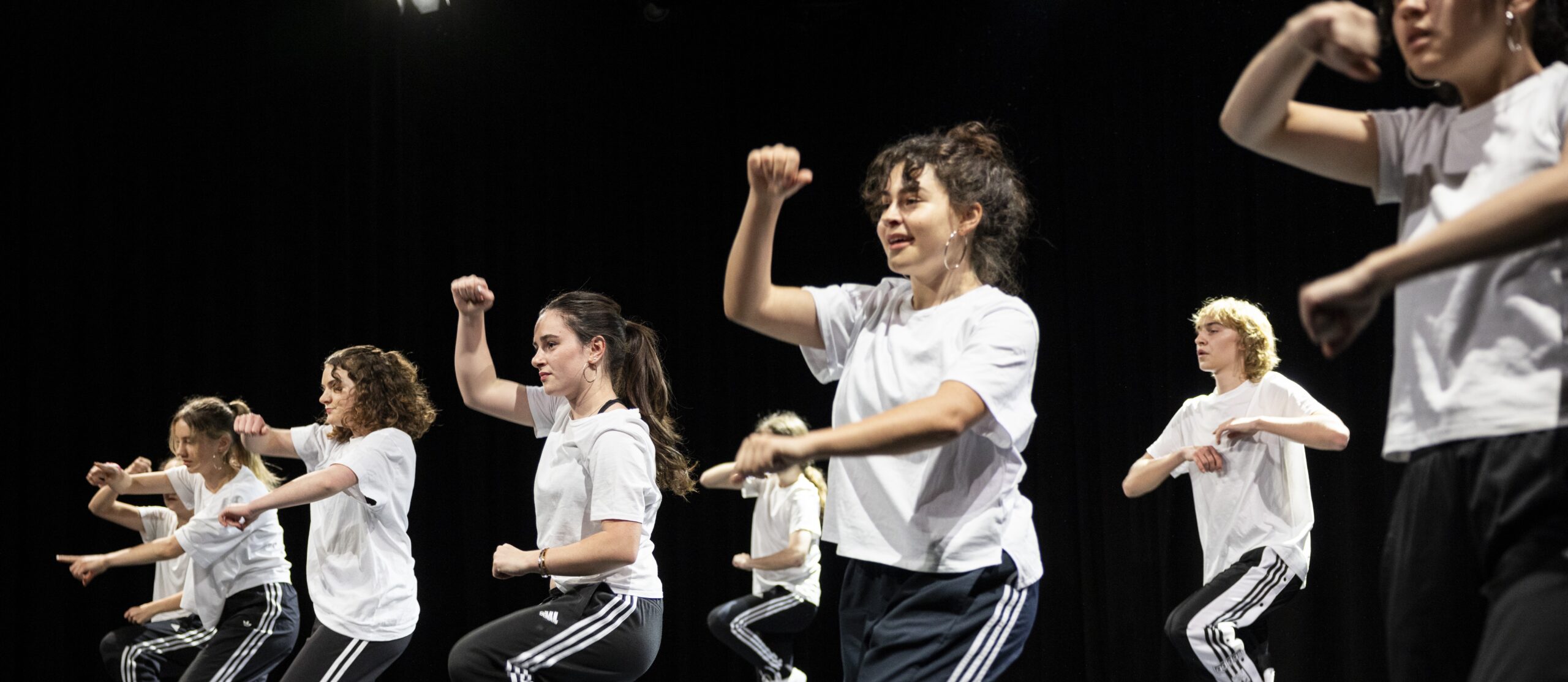 Kinder und Jugendliche tanzen auf der Bühne des Theater am Gleis und begeistern mit ihrem Können und Talent.