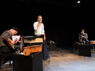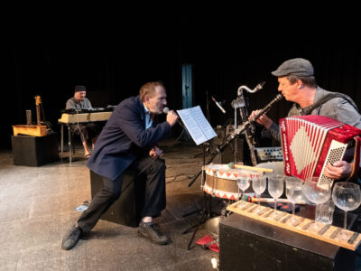 Das Glauser Quintett bringt Emil Zopfis neuen Roman «Der Untergang des Delphin» auf die Bühne. Zopfis Roman schildert ein Schiffsunglück auf dem Walensee in einer stürmischen Dezembernacht des Jahres 1850 sowie die anschliessende Bergung des Wracks. Im Zentrum der Geschichte stehen jene Menschen, die damals auf dem Schiff waren und mit ihm untergingen. Daniel R. Schneider hat dazu einen eigenständigen Soundtrack für zwei Multi-Instrumentalisten komponiert. Die Musik verleiht den beschriebenen Figuren zusätzliche emotionale Dimensionen und treibt das Unglücksschiff unerbittlich voran.