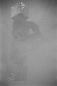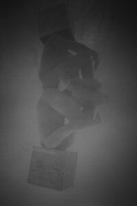 Eine mobile Box wird zum Bühnen- und Publikumsraum zugleich. Die Zuschauenden werden in die Betrachtungsposition eines Fötus verfrachtet – eine Position, die wir alle kennen und uns trotzdem nicht erinnern können. Der von Katja Brunner und Martina Clavadetscher geschaffene Text wird mit Musik, Audio-Design und Szenographie zu einem Gesamtkunstwerk vermengt. Licht und Klang sind eng gekoppelt- reagieren auf und füreinander.