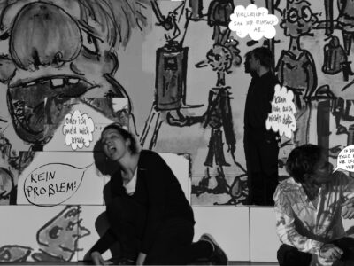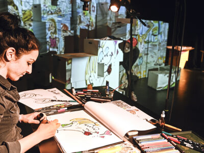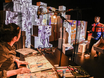 Bei «Not Interesting» trifft Live-Zeichnen auf Schauspiel. Comicfiguren bevölkern die Bühne, werden zum Leben erweckt und erzählen ihre Geschichten in Spoken Word und Prosa.