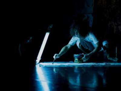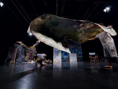 «Quasi» vermischt die Bewegungspraktiken des Tanzes und der Malerei und lässt drei Interpreten in die Intimität eines Ateliers eindringen, um dort die Körperzustände ihrer Praktiken auf diversen Graden an Spannung zu erforschen. In einem schwebenden und zugleich lebendigen Klanguniversum, komponiert von Fabio Laubscher, genannt «Biofs», bewegen sich die Körper in variierter Dynamik. Sie laden durch eine aus dem Hip-Hop-Tanz stammende Körpersprache ein, ihre engagierte Kommunikation durch die Dualität von Aktion und Reaktion zu erfassen. «Quasi» ist eine starke Erfahrung, die