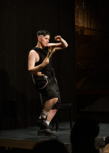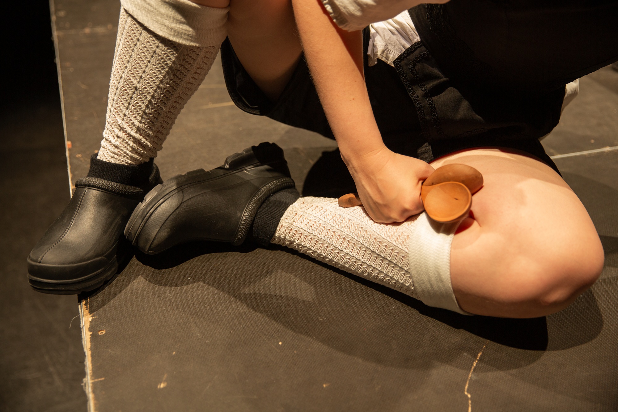 «spooning&entre.les.montagnes» ist ein Stück über das Vergessen, das Verdrängen und Möglichkeiten des Erinnerns. Sami Lea Samira Bernath löst das «Löffelä», ein Begleitinstrument, das Teil der heutigen traditionellen Schweizer Musik ist, aus seinem Kontext und begibt sich aus queerer Perspektive auf die Suche nach Durchlässigkeit und Offenheit. Indem sie versucht diese Schweizer Tradition zu dekonstruieren, erforscht sie Möglichkeiten, wie generationsübergreifendes Wissen die Gesellschaft nähren und durch die Neuinterpretation eine Exklusivität durchbrochen werden kann. Ein Spiel der Spuren, Vibrationen und Dissonanzen durchzieht Körper und Raum, um einen Rhythmus für alle zu kreieren.