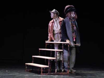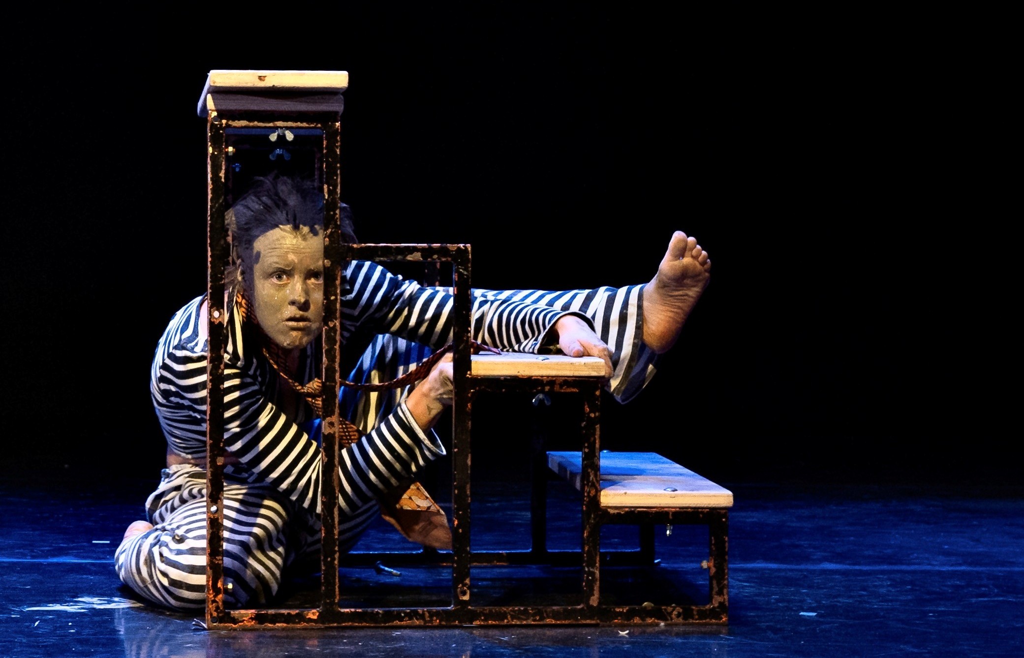 Drei groteske Figuren verleumden in einer eigenartigen Welt die Freiheit, das Menschsein und das Affentum. Absurd und poetisch.