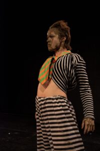 Inspiriert von Franz Kafkas Kurzgeschichte «Ein Bericht für eine Akademie», laden die drei Theatermacherinnen das Publikum mit den vielfältigen Mitteln des Physical Theatres in eine poetische Welt ein. In feinen Choreografien, einer klaren Bildsprache und enormer Körperbeherrschung geht es zwischen zwei Menschen und einem Tier um die Frage: Wer hat die Freiheit frei zu sein und wer ist in sich gefangen?